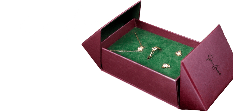 深みのあるグリーン × ワインレッドの特製ボックス。
